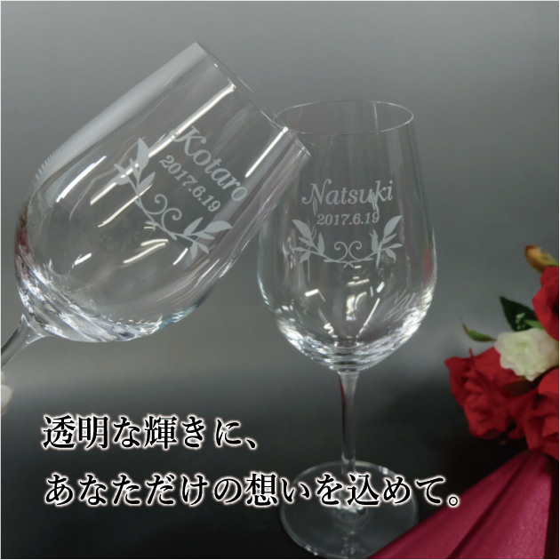 高品質のグラスへ、名前やメッセージを彫刻し、特別感を演出します。