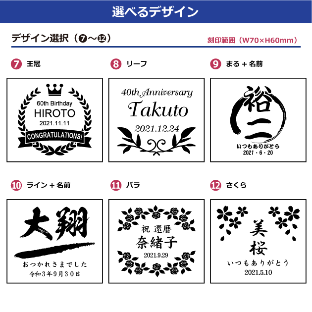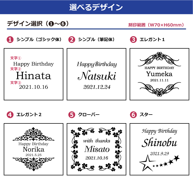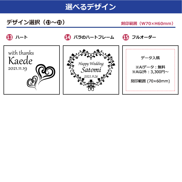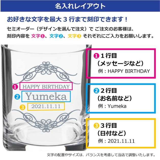 セミオーダー(デザインから選択)をご注文のお客様は、以下の〈文字①〜③〉にご記入ください。