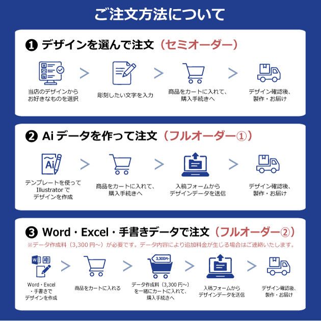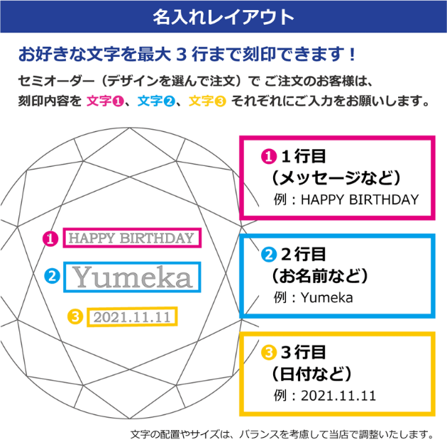 セミオーダー(デザインから選択)をご注文のお客様は、以下の〈文字①〜③〉にご記入ください。