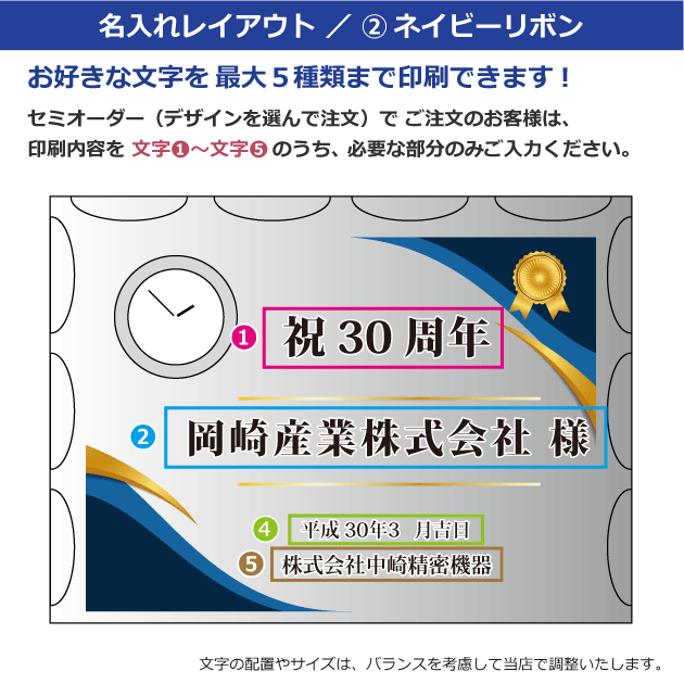 セミオーダー(デザインから選択)をご注文のお客様は、以下の〈文字①〜⑤〉にご記入ください。