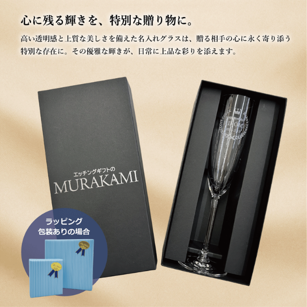 高い透明感と優れた強度を兼ね備え、日本の食卓にも映える美しいデザインが魅力です。名入れを施せば、記念日や贈り物にふさわしい上質なギフトに。
