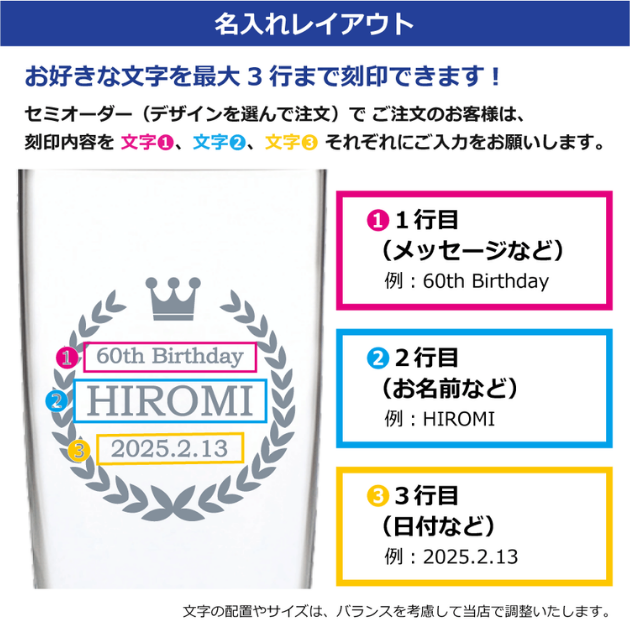セミオーダー(デザインから選択)をご注文のお客様は、以下の〈文字①〜③〉にご記入ください。