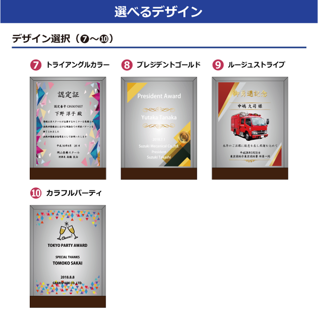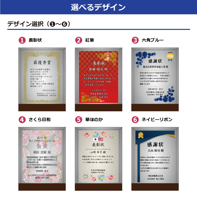 お名前・タイトル・日付などを印刷し、受け取る方の功績や感謝の気持ちをしっかりと形に残せます。 シンプルで上品なデザインは、表彰式や記念式典はもちろん、個人への贈り物としても幅広くご利用いただけます。