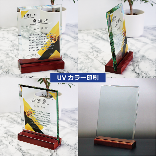 - 透明感のあるガラス素材を使用した表彰盾です。